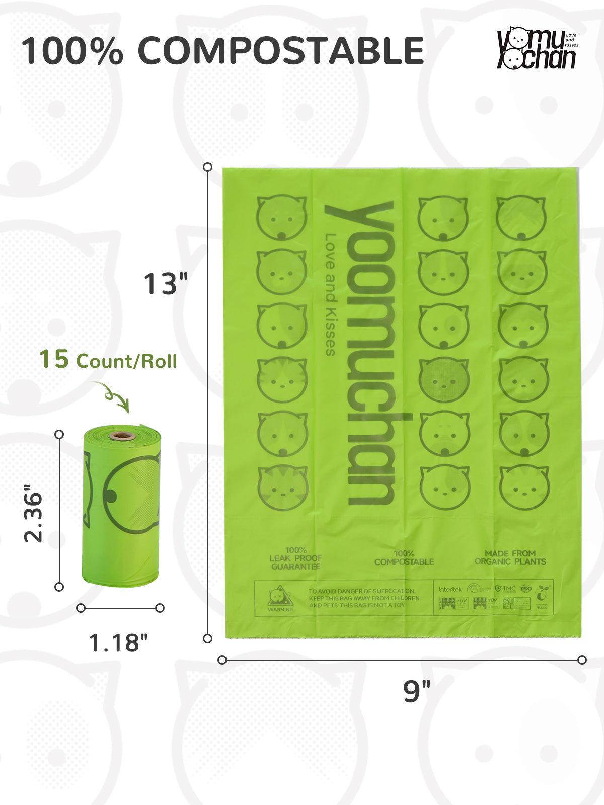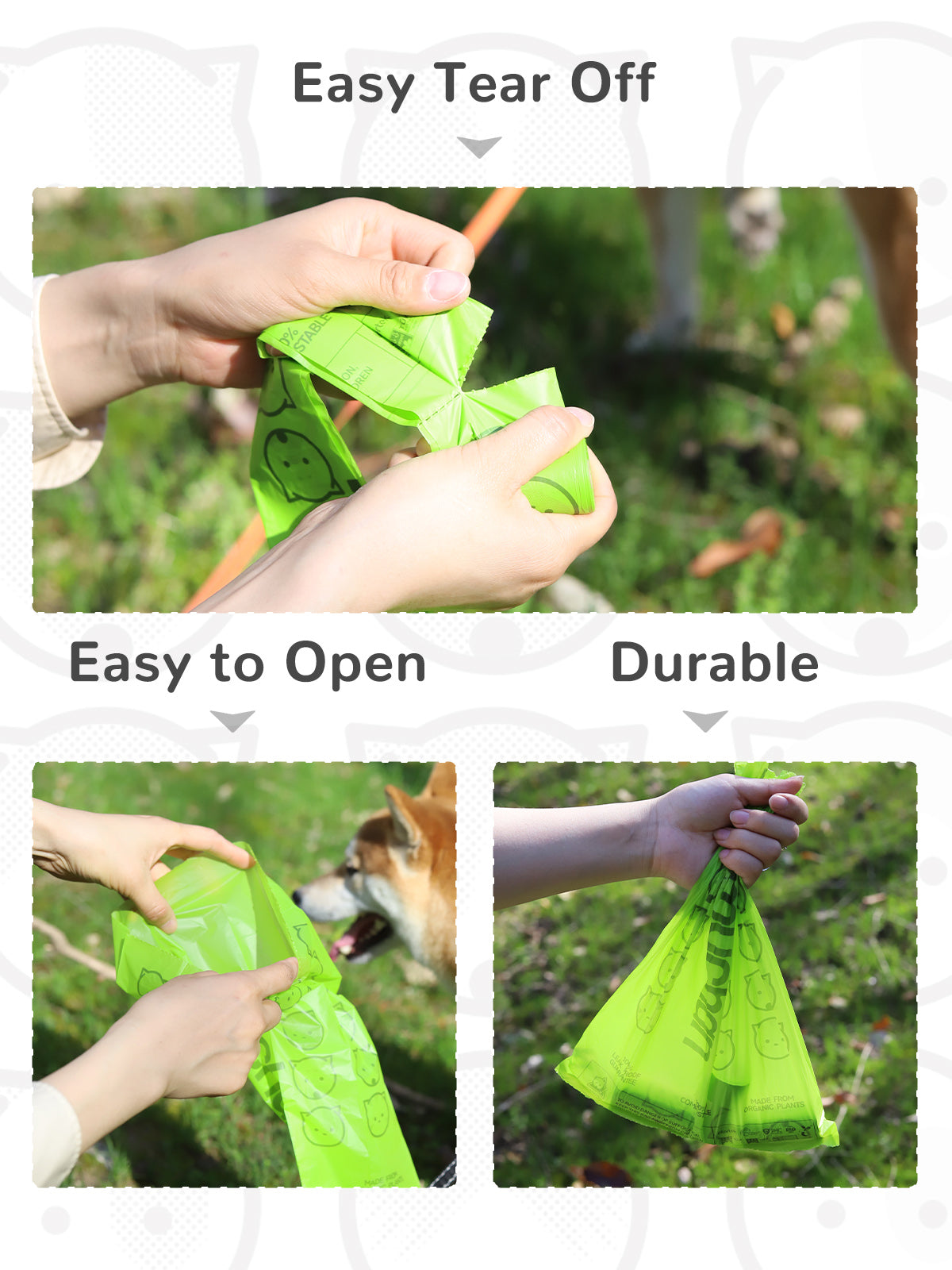 • 【Eco-Friendly Material】The dog poop bags are made from organic plants and 100% compostable. All of the materials are used to make the doggy poop bags have been certified by a number of authorities such as TÜV AUSTRIA, BPI, GRS and so on. They are eco-friendly and will degrade quickly, no environmental burden.