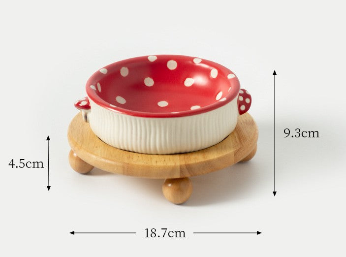 Mushroom Ceramic Pet Bowl - Whimsical Red & White Design Cat Dog Food Water Dish