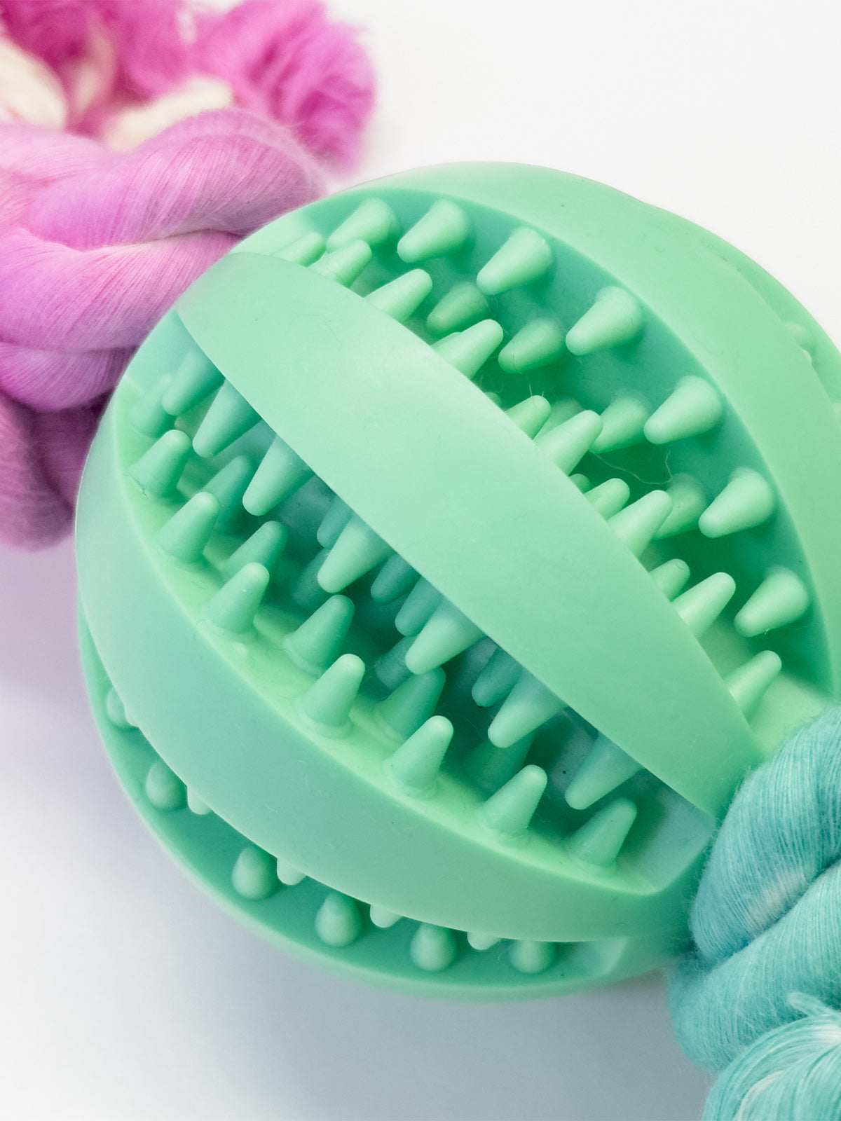 - This is a dog knot toy with 2 knots and a ball. Various colors of balls and different colors of rope are matched to become a special rope toy!