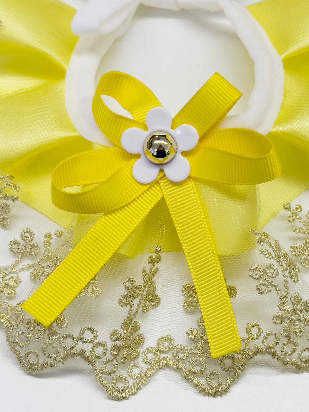 - This is a solid color collar decorated with lace, a bowknot and a flower for small cats and dogs.